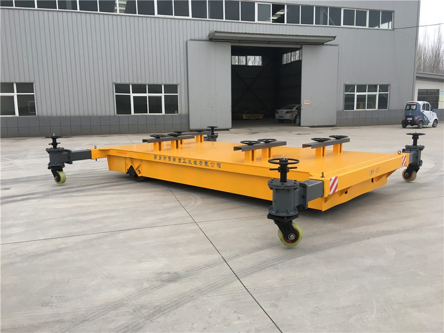 無軌膠輪運(yùn)輸車,載重30噸,可以按照實(shí)際載重需求定制加工,臺(tái)面夾具有效保護(hù)工件不會(huì)傾翻,臺(tái)面四周加裝可延伸輔助支撐輪,有效保護(hù)車體運(yùn)輸過程中的穩(wěn)定性。